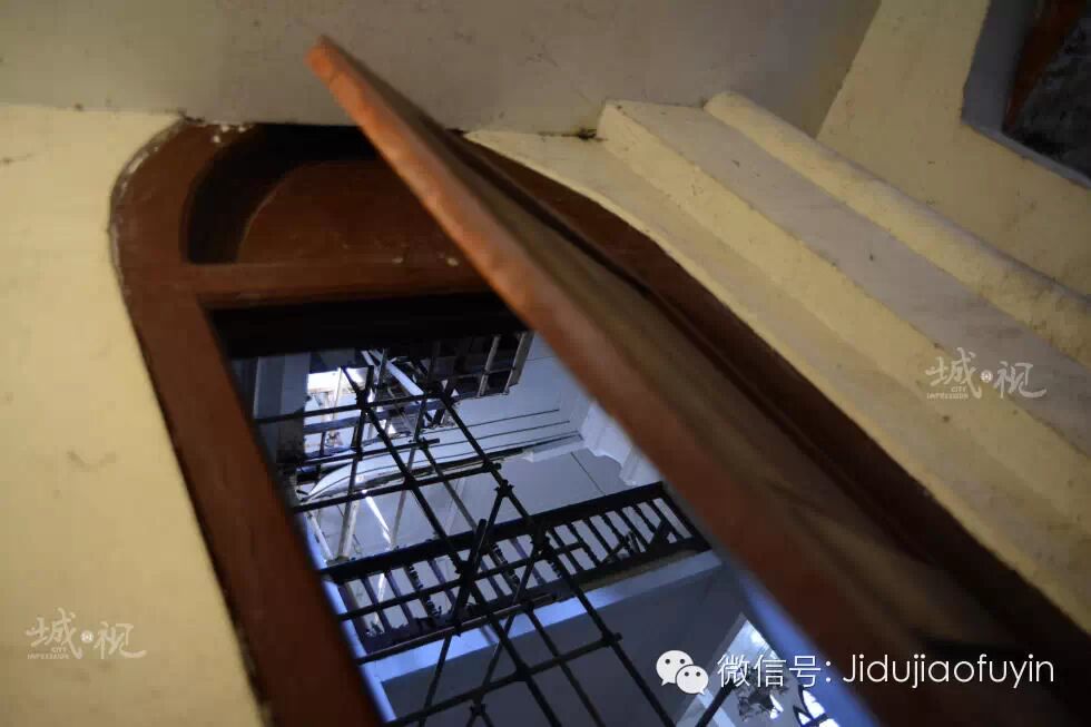 重庆百年教堂的集体大修自今年年初开始,预计到明年才能结束。说明来意后,我们得以入内参观,神像、桌椅早已搬至他处,唯有历经岁月的吊灯和玻璃窗还依稀可辨教堂昔日的辉煌。